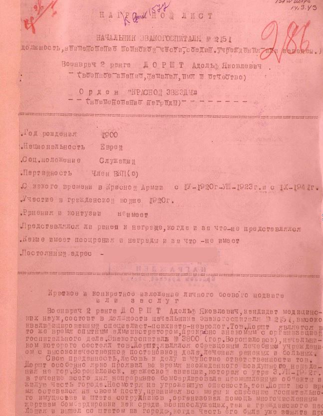 Одиннадцатого марта 1946 года Адольф Яковлевич Доршт был уволен в запас в звании подполковника медицинской службы[1].