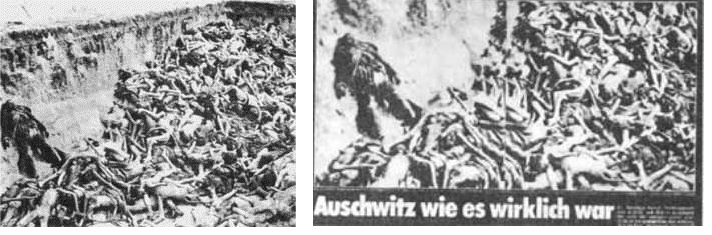 С Освенцимом связана известная фотоподделка, на которой умершие от эпидемии тифа в лагере Берген-Бельзен выданы за уничтоженных заключённых Освенцима[10]