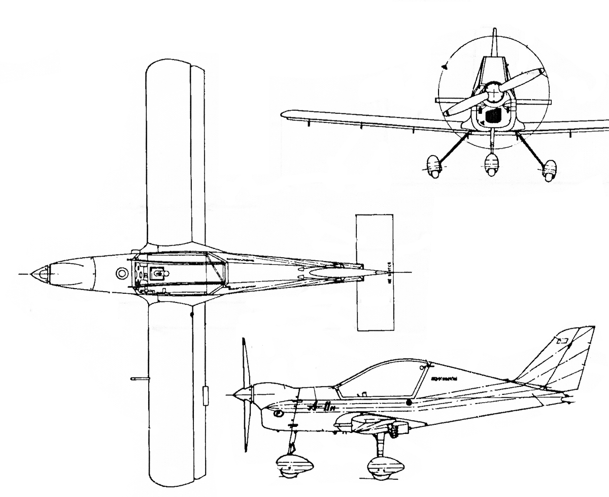 Капот двигателя выполнен из стеклопластика, кабина — прозрачный углепластик[9]. Топливный бак расположен под ногами пилота.