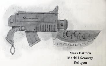 - Болты «Искатель» — специальные снаряды, использовавшиеся Капелланом Бореасом из Тёмных Ангелов. Каждый, собранный вручную снаряд содержал миниатюрный когитатор, направлявший болт на тепловое излучение цели.