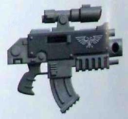 Болтган, также известный как Болтер, — стандартное оружие Адептус Астартес и Адепта Сороритас. Калибр стандартного Болтера — .75 (19,05 мм), он стреляет саморазгоняющимися разрывными «болтами», которые с огромной силой взрываются при попадании в цель, разрывая её на части изнутри.