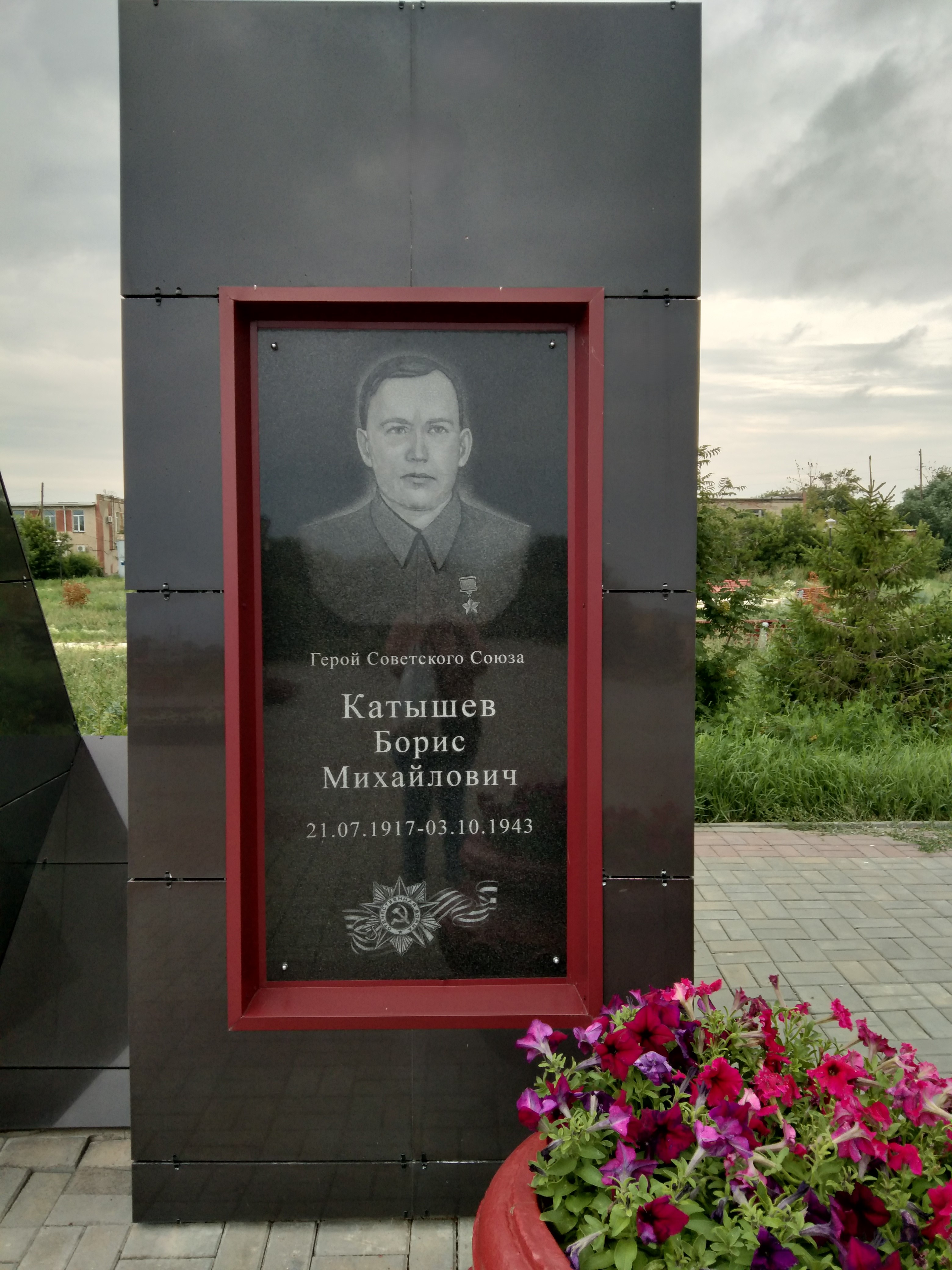 Мемориальный памятник-стела Борису Михайловичу Катышеву в рабочем посёлке Павлоградка Омской области