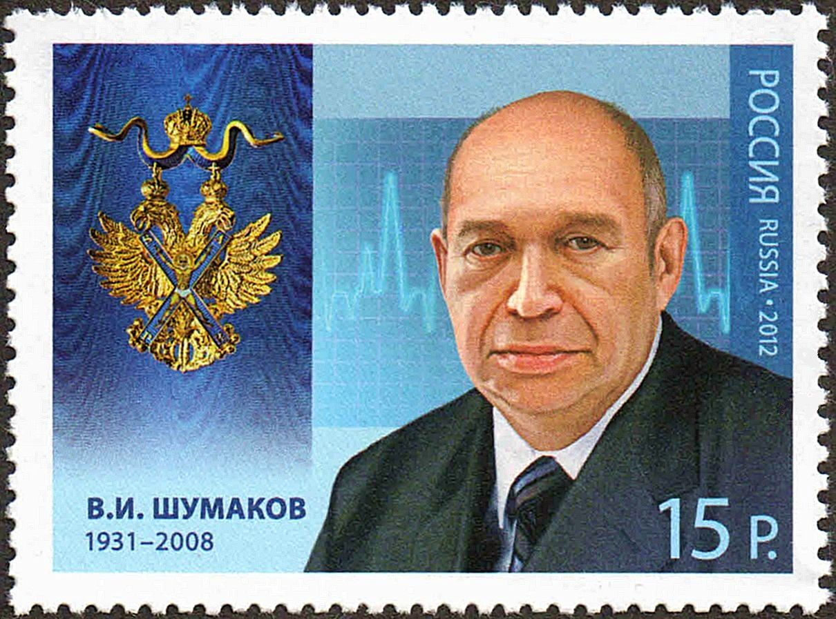 В 2012 году Почта России выпустила марку с изображением В. И. Шумакова. Номинал 15 р. Портрет В. И. Шумакова на фоне кардиограммы и знак ордена Святого апостола Андрея Первозванного[21].