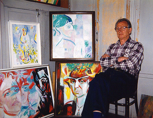 Живопись была представлена работами «Старик-азербайджанец» (1948), «Азербайджанец в папахе» (1948), «Озеро Красавица» (1952), «Дувалы» (1955), «Улица в Самарканде» (1955), «Торговля в тени» (1955), «Кострома. Зимний вечер» (1955), «У самолёта» (1955), «Шах-и-Зинда» (1955), «Первый хлеб» (1955), «Привезли почту» (1955), «Год 1917-й» (1957), «Мойка» (1958), «Первомай на Васильевском острове» (1958), «На Фонтанке» (1958), «Мадонна Хиросимы» (1959), «В тисках проблем» (1966), «Новая Сибирь» (1966), «Портрет Г. Егошина, З. Аршакуни и Я. Крестовского» (1968), «Портрет ветерана Кировского завода, участника штурма Зимнего В. В. Васильева» (1969), «Цветы в белой вазе» (1970), «Группа кактусов» (1972), «Моцарт» (1973), «Ваза» (1974), «Фортепианный концерт № 1» (1974), «Большой органный концерт» (1975), «Операция» (1975), «Портрет лауреата Ленинской премии хирурга Н. М. Амосова» (1975), «Микельанджело» (1975), «Бетховен» (1976), «Маяковский» (1976), «Фантазия на тему воспоминаний о Данте и Микеланджело» (1976), «Лермонтов» (1976), «Вечер у Нарвских ворот» (1977), «Новогодняя ночь у Кировского универмага» (1977), «Натюрморт с красным перцем» (1977), «Дуэт» (1978), «Концерт для виолончели и певицы» (1978), «Концерт для рояля № 4» (1978), «Формы и пространство № 3» (1978), «Лев Толстой» (1979), «Белые кактусы» (1980), «К солнцу» (1980), «Концерт Миру — Мир!» (1980), «Натюрморт с самоваром» (1980), «Белый концерт» (1981),
