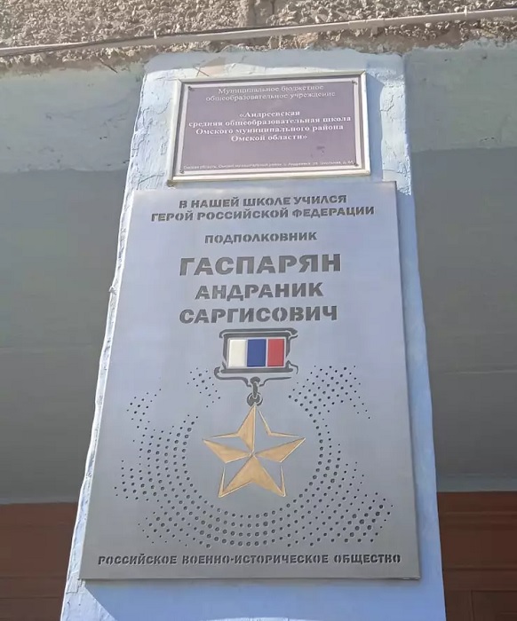 26 мая 2022 года на здании средней школы в селе Андреевка Омского района, в которой учился Андраник Гаспарян, открыта памятная доска[1][3].