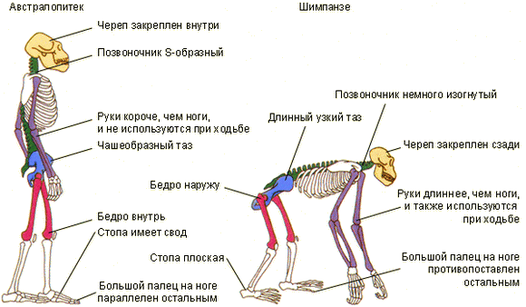 Основным отличием австралопитеков на этом этапе развития стало прямохождение, о чем свидетельствует строение его тазовых костей.