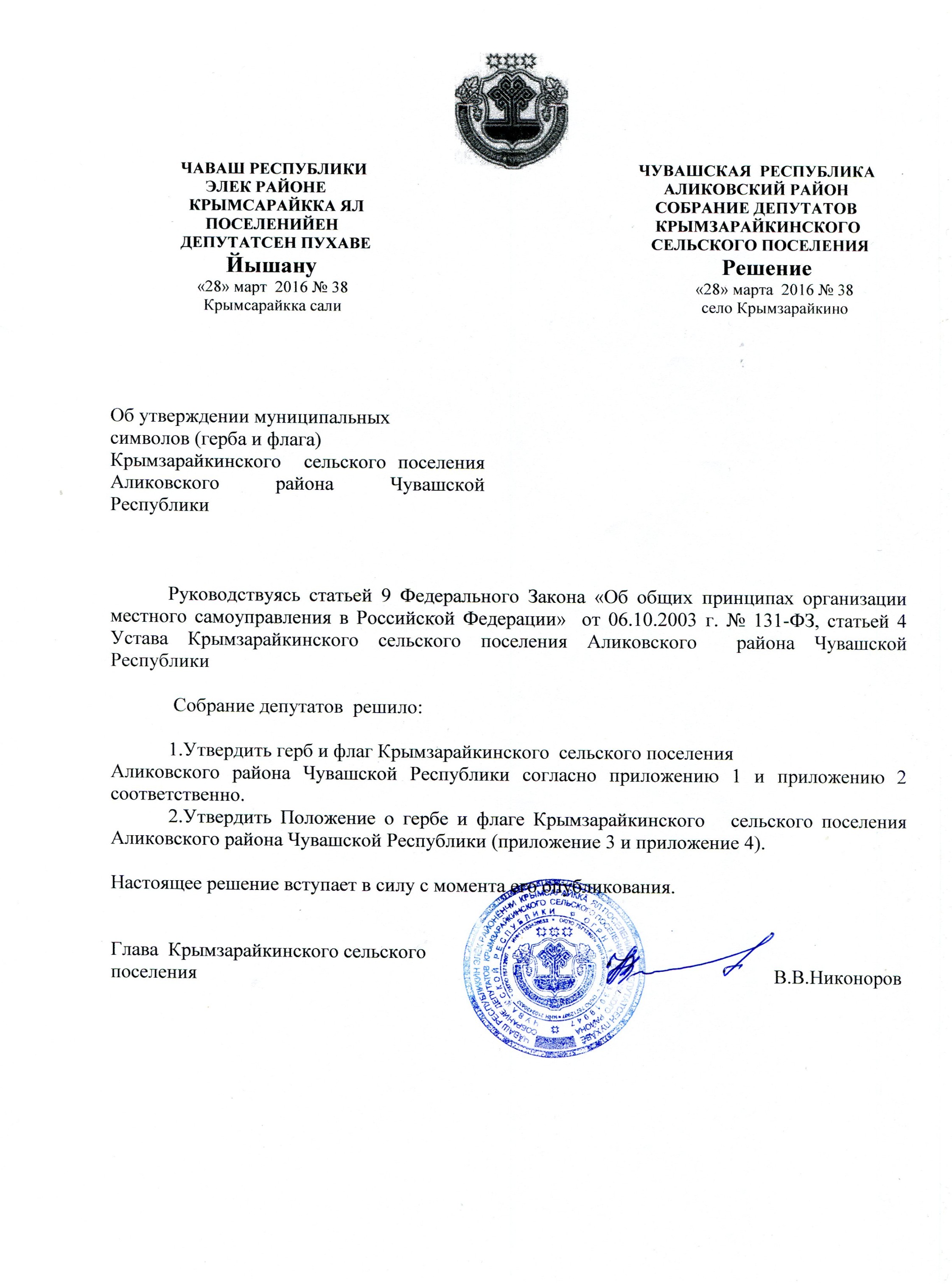 - ↑ Крымзарайкинское сельское поселение Аликовского района » Положения о гербе и флаге Крымзарайкинского сельского поселения. gov.cap.ru. Проверено 27 марта 2025.