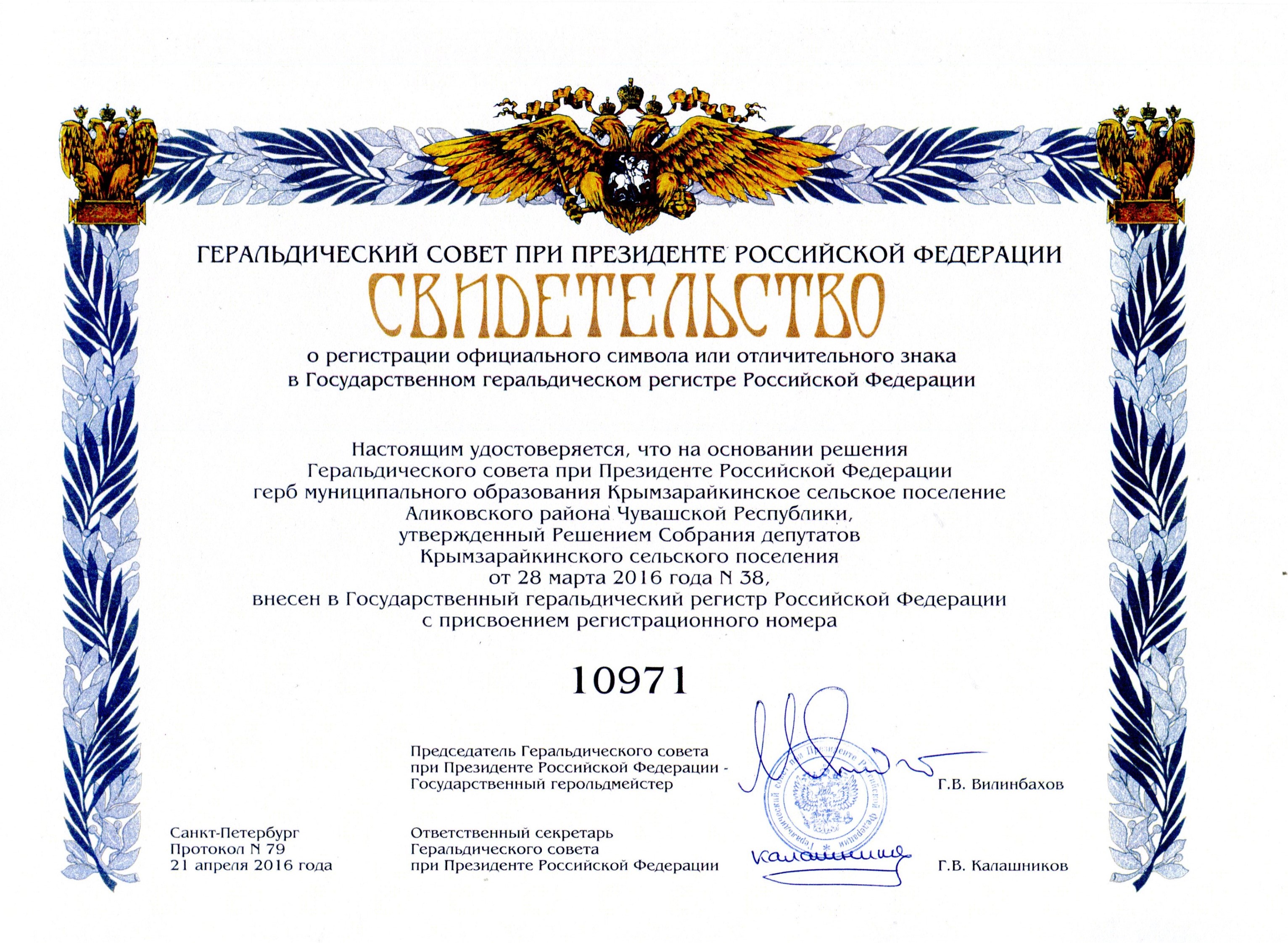 - ↑ Геральдический художник Вадим Шипунов - Герб и флаг Крымзарайкинского сельского поселения Аликовского района. wshipunov.ucoz.ru. Проверено 27 марта 2025.