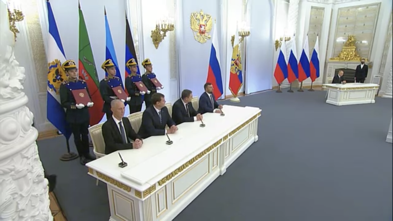 30 сентября 2022 года президент России Владимир Путин подписал договоры о вступлении ДНР, ЛНР, Запорожской и Херсонской областей в состав РФ[10][11].