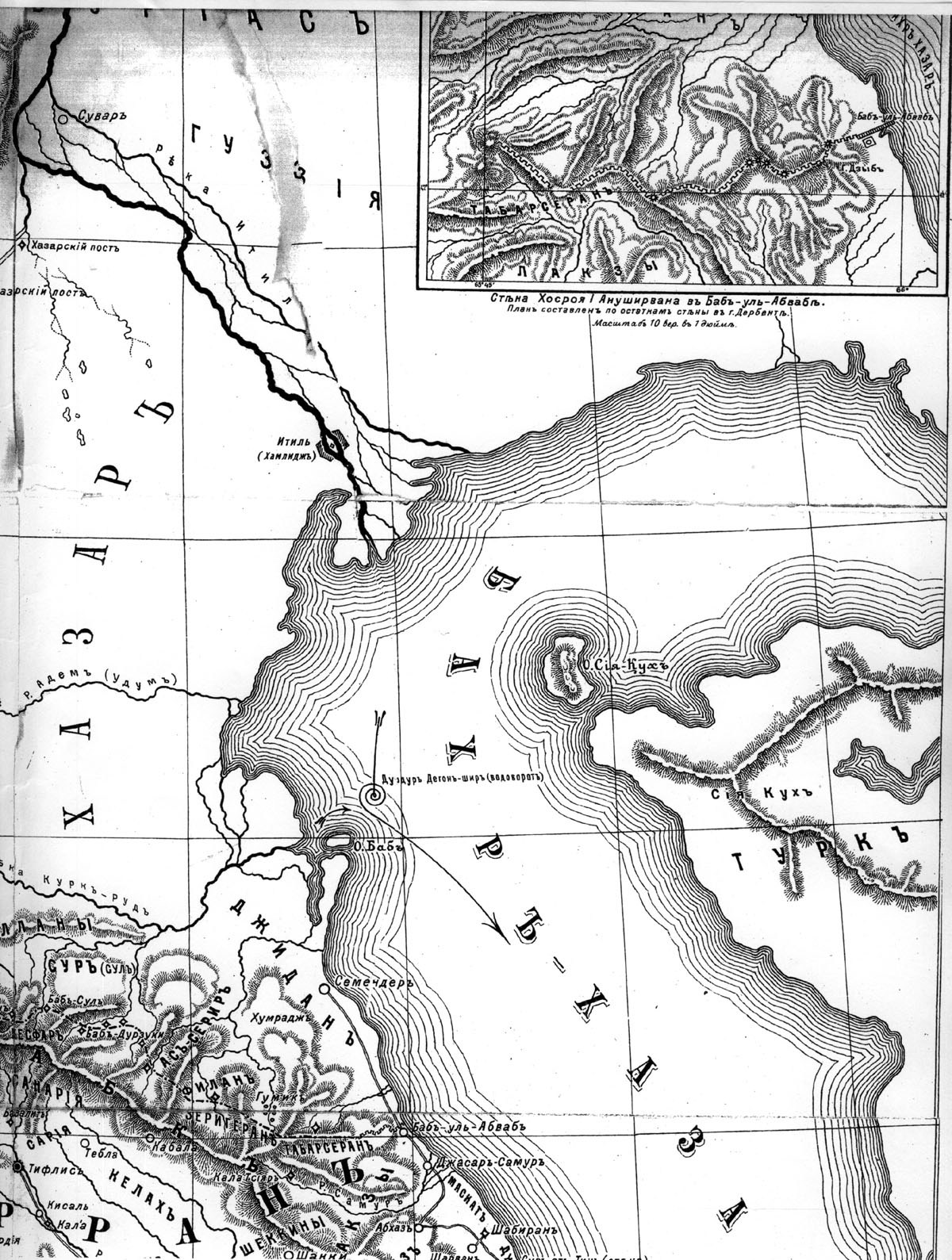 Джидан на карте Восточного Кавказа (Бахр-Хазар — Каспийское море).