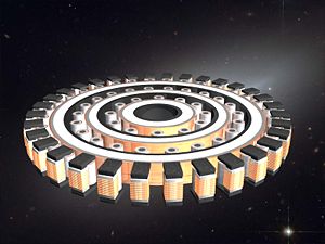 По утверждению автора устройства, особенность этих магнитов в том, что они, притягиваясь к диску, при этом отталкиваются друг от друга. Это приводит к тому, что они сохраняют по периметру диска радиальную симметрию расположения.