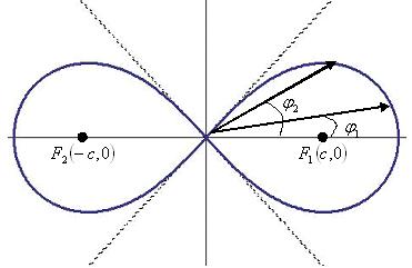 r2 = 2c2cos2φ — уравнение лемнискаты Бернулли в полярных координатах;