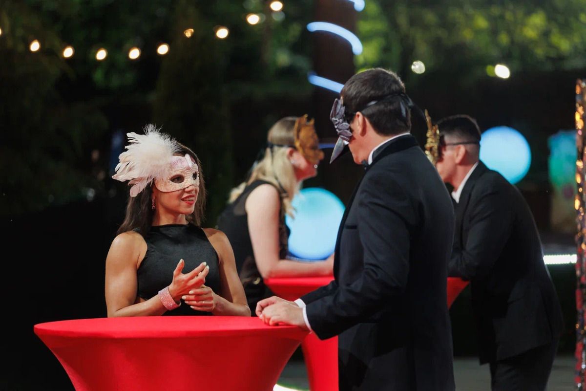 | 1 | 31 октября 2023 | 13 участников вместе со своими детьми приехали в дом отдыха «Ягодка». Взрослые поселились в основном корпусе, дети тайно в соседнем здании. Вечером состоялась первая вечеринка с танцами, быстрыми свиданиями и игрой в фанты. Дети тайно выбрали Королеву и Короля вечеринки — ими стали Елена Якубинская и Алексей Балин. На второй день состоялась утренняя гимнастика, провокационная фотосессия у бассейна и два индивидуальных свидания. | |