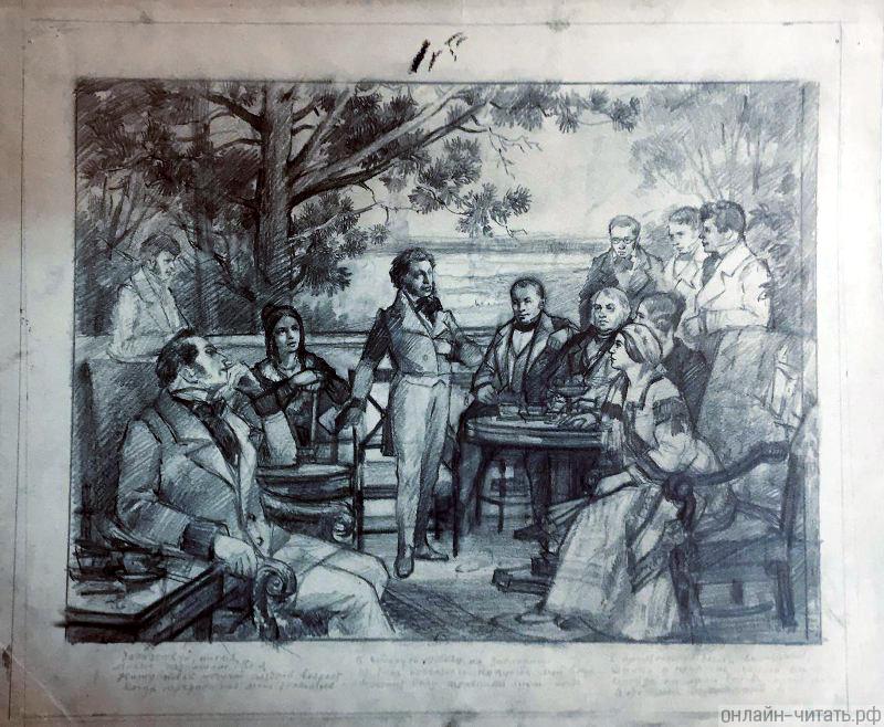 - ↑ 1,0 1,1 Цявловский М. А. Летопись жизни и творчества А. С. Пушкина. В четырёх томах. Т. I (1799—1826). — М.: Изд-во АН СССР, 1951.