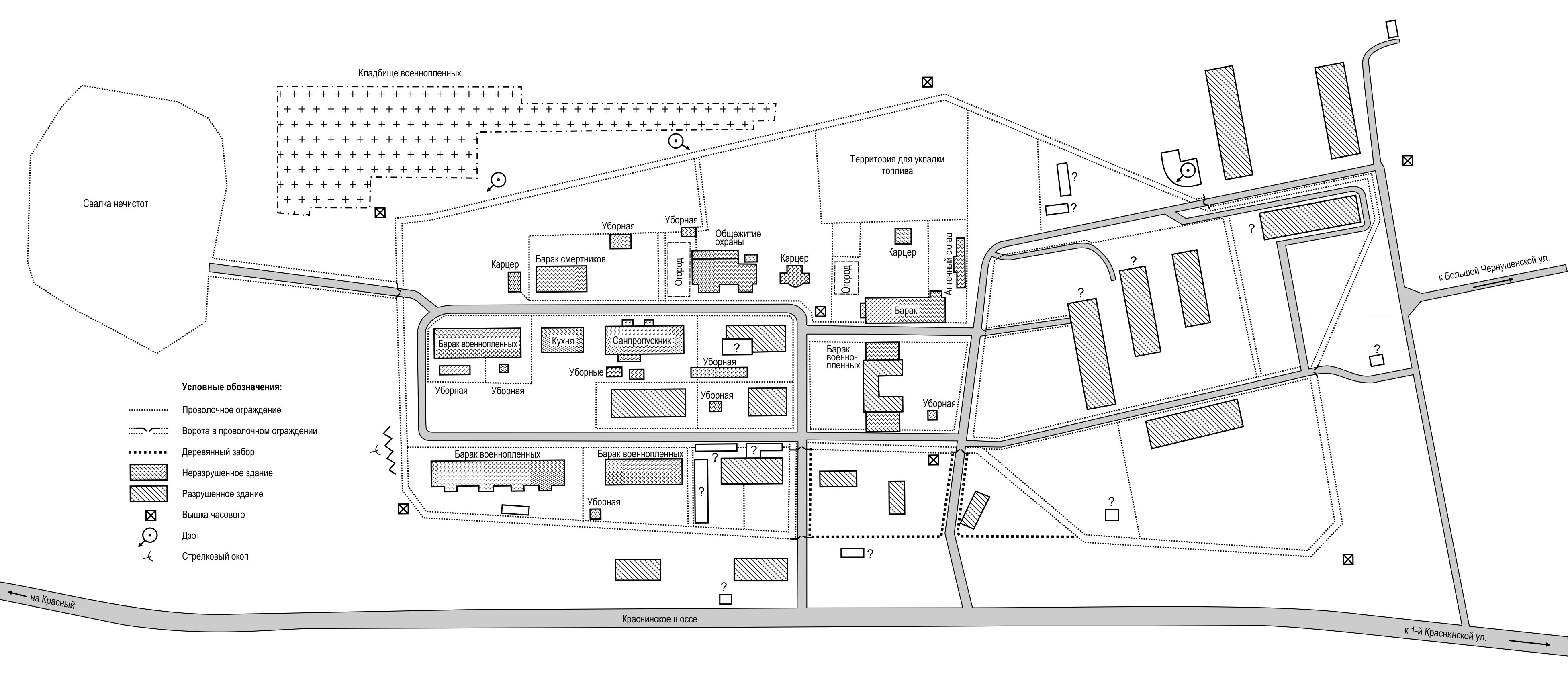 - ↑ СПИСОК КОНЦЕНТРАЦИОННЫХ ЛАГЕРЕЙ И ДРУГИХ МЕСТ ПРИНУДИТЕЛЬНОГО СОДЕРЖАНИЯ ВОЕННОПЛЕННЫХ И ГРАЖДАНСКОГО НАСЕЛЕНИЯ В ПЕРИОД ВЕЛИКОЙ ОТЕЧЕСТВЕННОЙ ВОЙНЫ НА ТЕРРИТОРИИ СМОЛЕНСКОЙ ОБЛАСТИ (В ГРАНИЦАХ 1943 Г.). / В книге: Без срока давности: преступления нацистов и их пособников против мирного населения на оккупированной территории РСФСР в годы Великой Отечественной войны. Смоленская область: Сборник архивных документов / отв. ред. серии Е. П. Малышева, Е. М. Цунаева; отв. ред. О. В. Иванов; сост. С. В. Карпова//. — ISBN 978-5-907174-43-6. — Москва: Фонд «Связь Эпох»: Кучково поле, Музеон, 2020. — 656 с.: ил. с. 540—544.