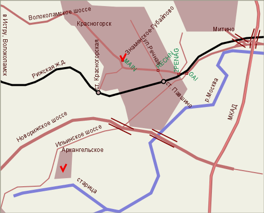 Усадьба располагается на расстоянии около 7 км к западу от Москвы. Проезд из Москвы по Волоколамскому шоссе до Красногорска, повернуть на улицу Ленина, далее до церкви, усадьба — позади храма.