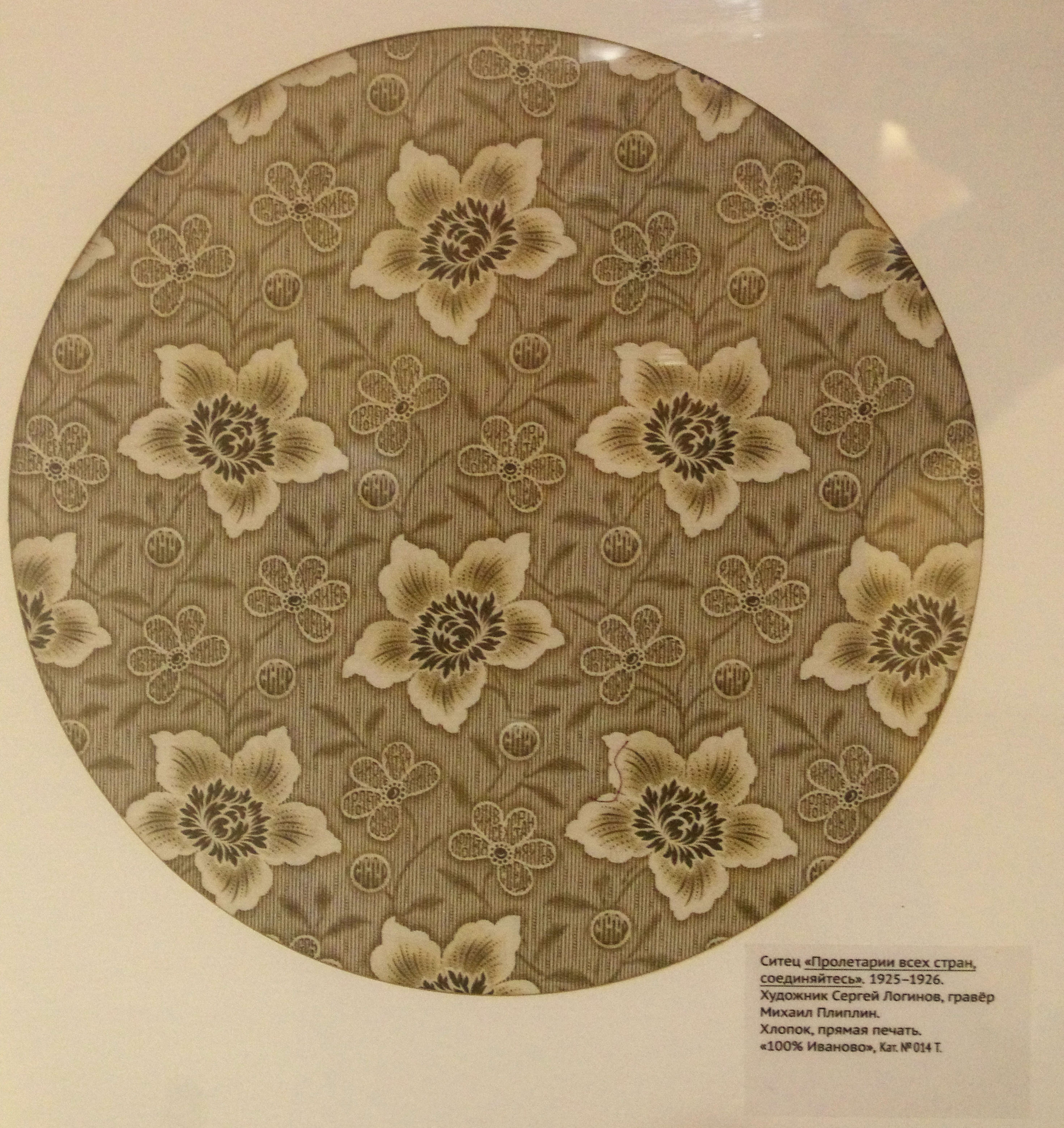 В 1920—1930 годы дизайн ивановского текстиля претерпел существенные изменения: в течение десятилетия ивановские набивки носили агитационный характер. Художники вдохновлялись советскими журналами «Смена», «СССР на стройке», «Советское фото». Атрибуты советской действительности вписывались в существующие традиционные раппорты. Например, художник С. В. Логинов разработал цветочно-растительные орнаменты, частично состоящие из мелких надписей «Пролетарии всех стран, соединяйтесь!». Этот орнамент исследователи считают высочайшим образцом граверного искусства. Однако чаще всего встречались аббревиатуры КИМ, МОПР, СССР, РСФСР, цифры 4 и 5, передающие популярный лозунг «Пятилетку в четыре года». Агитационные ткани выпускались до конца 1930 годов[5].