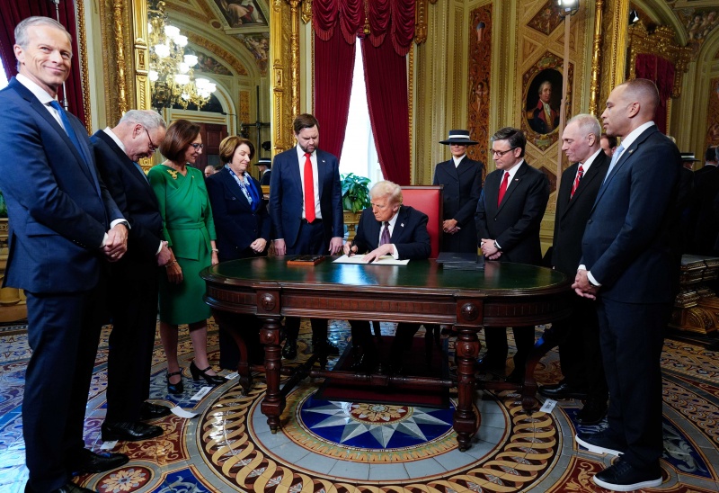 Избранный президент США Дональд Трамп прибыл в Конгресс на церемонию присяги, она проходила не на на ступенях Капитолия, а под крышей закрытой Ротонды. Первым принёс клятву вице-президент Джеймс Дэвид Вэнс, следом за ним — Трамп. Положив руку на семейную Библию и Библию Авраама Линкольна, он заявил: