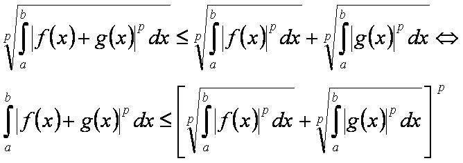 Интегральное неравенство Минковского — неравенство, гласящее, что корень p-степени из определённого интеграла p-степени модуля суммы двух функций не превышает суммы корней p-степени из определённых интегралов p-степеней модулей этих функций.