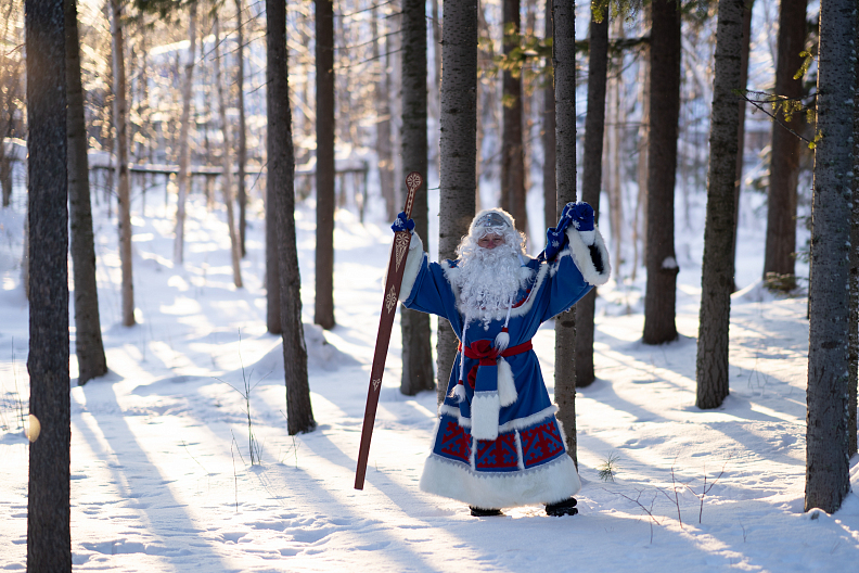 Югорский волшебник охотно водит хороводы вокруг нарядной ёлки, ведь эта традиция существовала у коренных народов Севера на протяжении нескольких веков и появилась раньше, чем в Центральной России. Только в древности ханты и манси украшали бусами и пёстрыми лентами не ель, а берёзу[2].