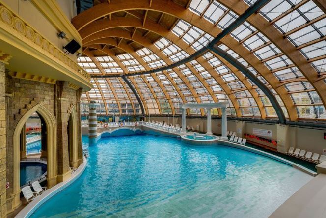 Общая площадь объекта составляет 22,260 кв. м, из них наземная часть 12,673 кв. м, подземная 9,587 кв. м[1]. Купол аквапарка поддерживают большие деревянные конструкции, высота арок достигает 25,5 метров. Основными несущими конструкциями полукупола являются рамы, включающие трёхшарнирные деревянные арки с опорами на разных уровнях[3].