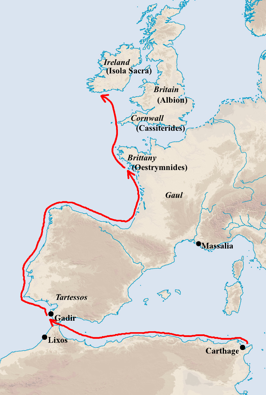 Как далеко распространилась власть Карфагена в Атлантике остаётся предметом дискуссии. Карфагеняне считали акваторию Атлантического океана своей, следовательно, они заявляли свои «права» на все открытые ими территории в Атлантике — как в Африке, итак и в Северо-Западной Европе.