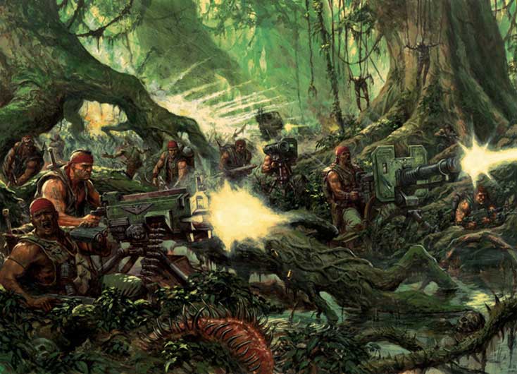 | 56й Катачанский «Громилы» | 56й Катачанский сражался на Цитерии. Во время этой кампании весь полк носил противогазы, так как джунгли этого чужого мира время от времени окутывались клубами ядовитых спор. |