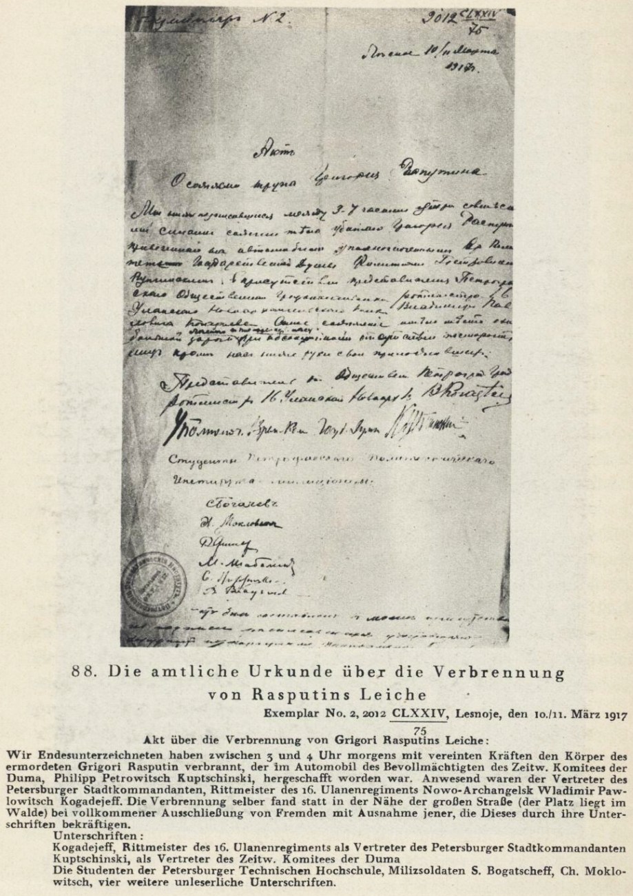 - Факсимиле официального акта о сожжении трупа Г. Е. Распутина.jpg 919 × 1300; 271 Кб