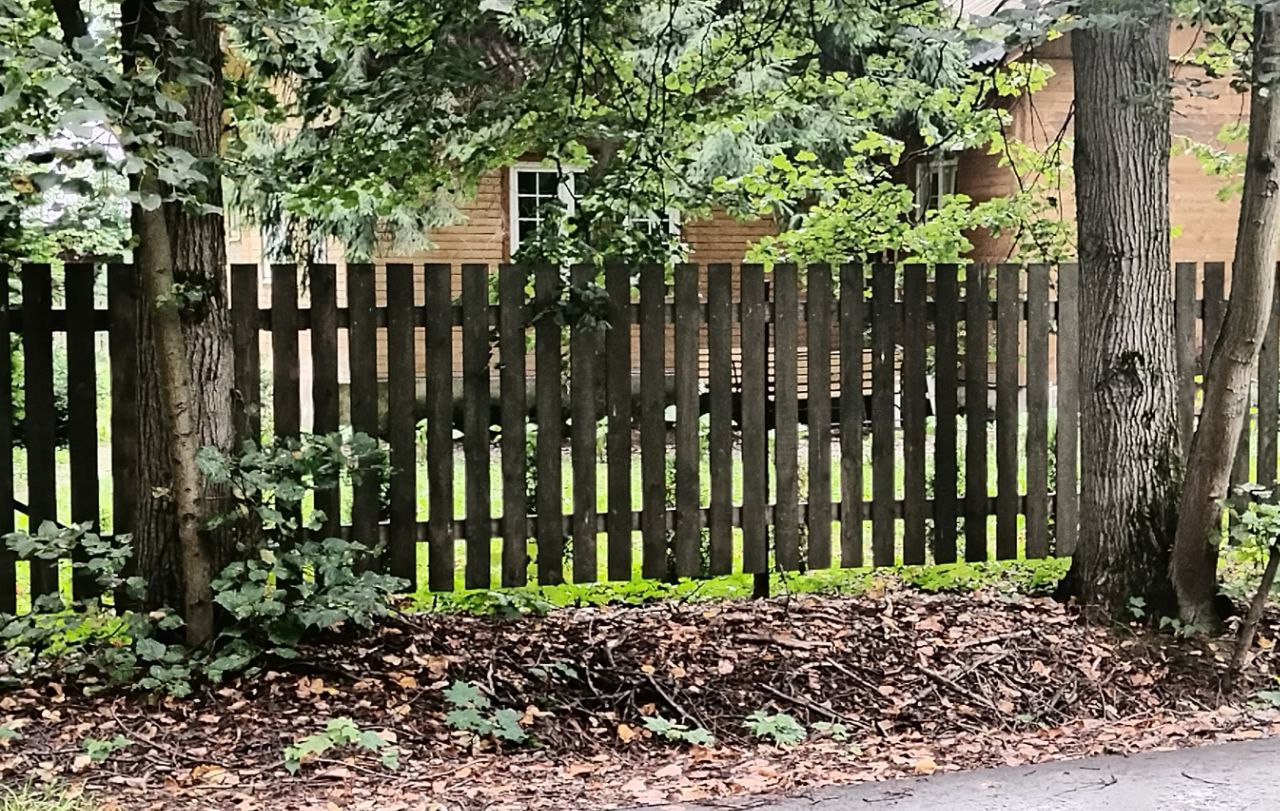 - Штакетник. Набор жёстких секций, укреплённых на горизонтальных жердях, которые крепятся к столбам. Опоры, как правило, делают из древесины, кирпича, железобетона. Штакетник хорошо задерживает ветер, частично пропускает свет.