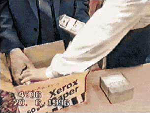 Впоследствии в прессе было уточнено, что «коробка из-под ксерокса» на самом деле была коробкой из-под офисной бумаги фирмы Xerox формата A4, а в доказательство этого приводилась видеозапись. Как написано в материале К. Петровой, опубликованном в 1996 в журнале «Лица», это была стандартная коробка для бумаги длиной 30,1 см, шириной 22,5 см и высотой 21,5 см.