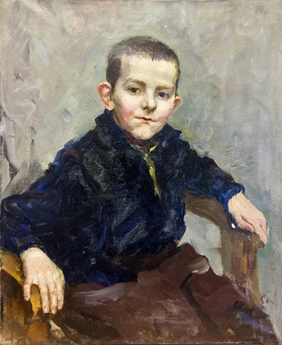 Сравнительно реже А. Коровяков писал портреты, однако и в этом жанре им были созданы значительные произведения. Примером может служить «Портрет Саши Кузнецова»[18] (1962), сына А. П. Кузнецова, художника и директора СХШ (1952-1960).