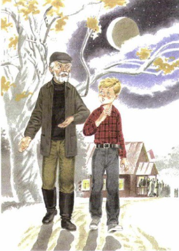 Петькина тётя и её муж — городские жители. Они приехали из Москвы и воспринимают деда как деревенского чудака. Они проявляют интерес к деталям разговора, но, по факту, им нет дела до человека и его чувств. Муж тёти, пытаясь показать своё интеллектуальное превосходство над стариком, унижает его снисходительной усмешкой.