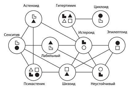 Первоначально, Леонгард определил 12 типов акцентуаций личности, которые разбил на три группы[17]: