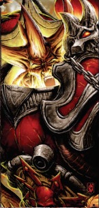 Молодой Лоргар регулярно страдал от видения, в котором могучий воин в блестящих бронзовых доспехах подходил к Колхиде, а рядом с ним стоял гигантский циклоп в синих одеждах. Постепенно видения достигли такой интенсивности, что Лоргар заявил, что предсказал возвращение бога Колхиды, которое должно было скоро произойти. Он начал проповедовать это среди людей Колхиды, нарушая законы Завета, так как люди под его воздействием меняли свои убеждения. Враги Лоргара из Завета увидели в этом возможность, которую они долго ждали, чтобы устранить угрозу от Лоргара для их статуса-кво и объявили его еретиком.