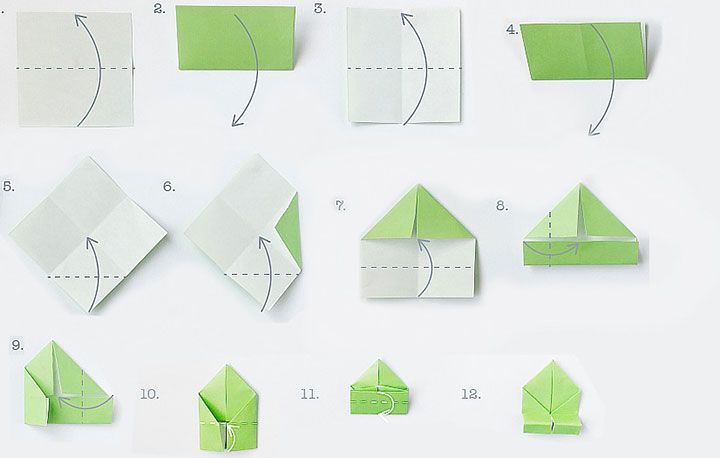 Бумажные лягушки, сделанные из прямоугольного листа бумаги