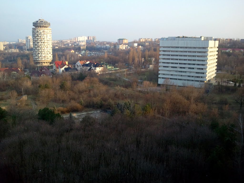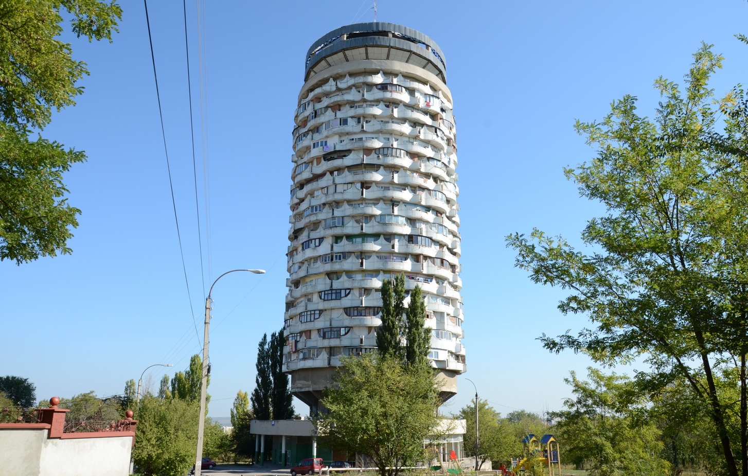 Это уникальное для Кишинёва здание круглого сечения было спроектировано архитектором Олегом Вронским в начале 1980-х годов. Строительство было осуществлено уже в середине 1980-х и стало эксклюзивным архитектурным памятником для всего бывшего СССР (аналогичные башни в Минске и Киеве спроектированы несколько по-другому). По словам архитектора, на создание здания «Ромашка» его вдохновил жилой архитектурный комплекс «Марина-сити» в Чикаго (1964 год). «Ромашка» (или, как некоторые горожане прозвали дом за характерную форму, «Кукуруза») должна была стать частью крупного архитектурного комплекса, в который, помимо 22-этажного высотного жилого здания, должны были войти также столовая, кинозал, спортивный зал и библиотека. Окончательный проект «Ромашки» утверждал лично Первый секретарь ЦК Компартии Молдавии Иван Иванович Бодюл. Комплекс окончательно достроить не удалось по причине распада СССР, до конца было доведено строительство только жилой башни.