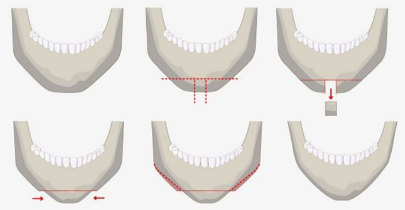- Резекция — удаление избытков костной ткани в области углов нижней челюсти.