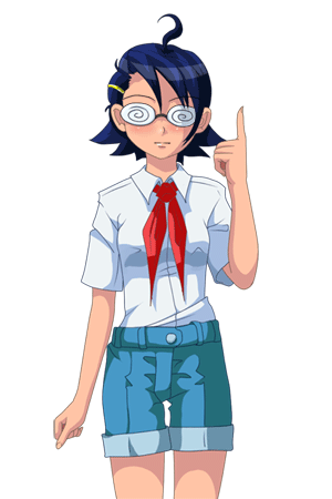 Мицгёл — трап или девушка с плоской грудью, имеет жёлтые глаза, короткие тёмно-синие волосы с чёлкой и торчащей на макушке прядью. Носит комбинезон-шорты, серый плащ-накидку (аллюзия на имя) или школьную пионерскую форму советского образца. На носу — очки, часто со спиральками вместо стёкол. В руках держит книгу.
