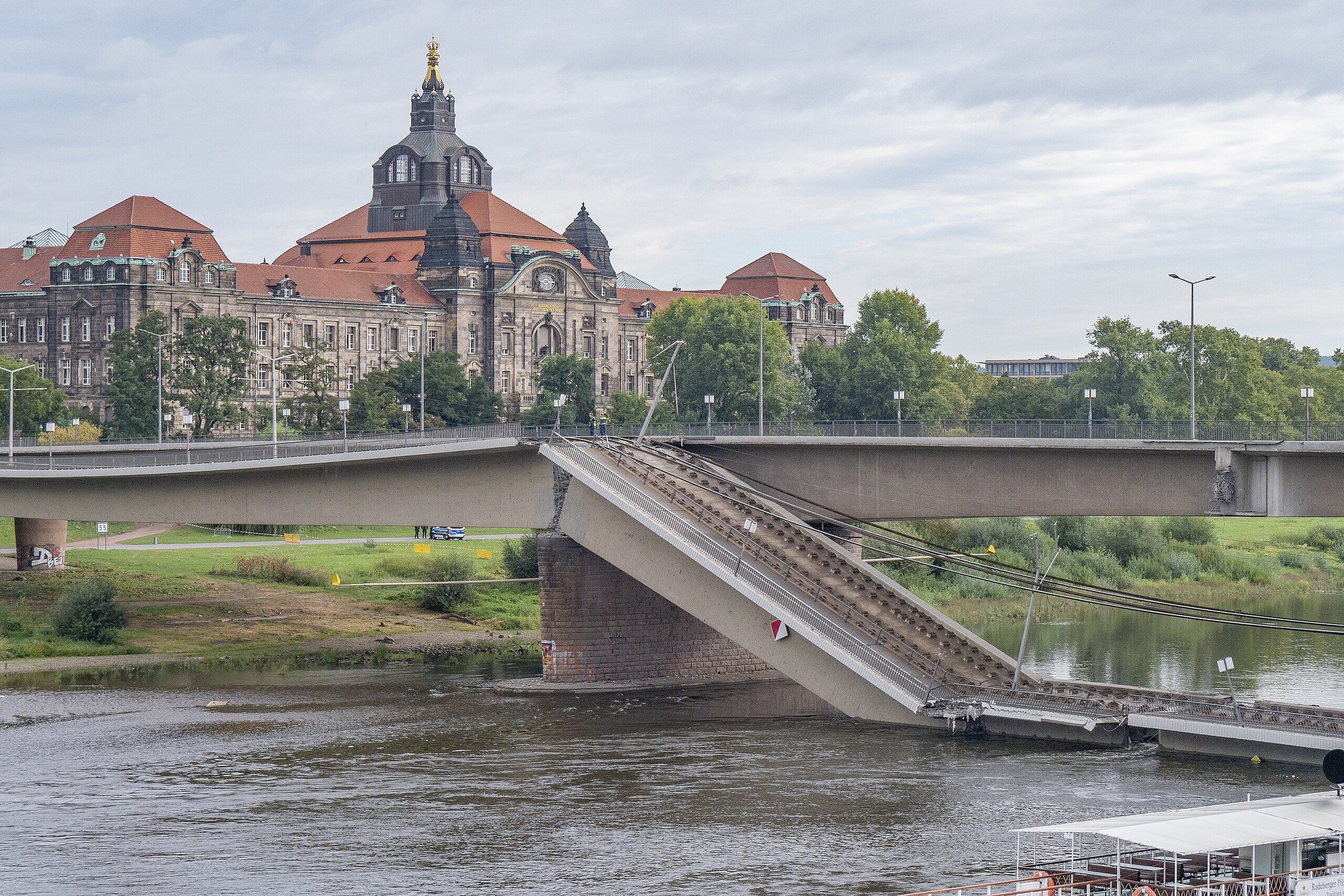 - ↑ Dresden: Was über den Einsturz der Carolabrücke bekannt ist нем.. Spiegel. Проверено 13 сентября 2024.