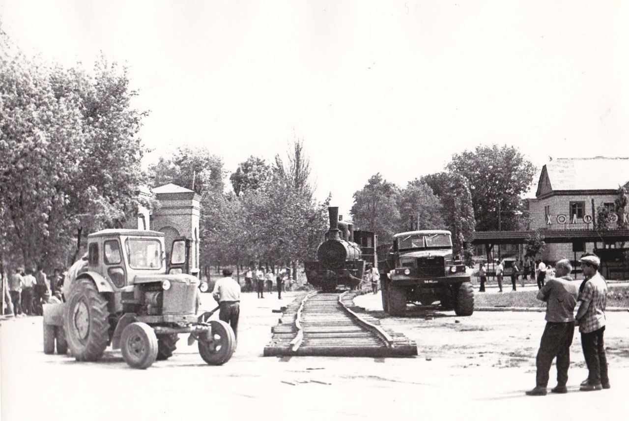 В 1972 году в связи со столетним юбилеем станции Ясиноватая в городе было принято решение сделать праздничную экспозицию: перрон с размещённым на нём составом из паровоза с несколькими вагонами. Автором проекта был В. Д. Акиндеев[1]. Из Белоруссии с киностудии «Беларусьфильм» в Ясиноватую был доставлен паровоз Ов−5769, к которому присоединили три вагона — 1912-го, 1937-го и 1960-70-х годов выпуска, состав был установлен на постамент рядом с Домом культуры Железнодорожников. К вагонам были проведены необходимые коммуникации, и внутри поезда-памятника открылся Музей революционной, боевой и трудовой славы — единственный в СССР музей-паровоз[2].