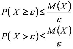 - Невозможно разобрать выражение (Ошибка преобразования. Сервер («https://wikimedia.org/api/rest_») сообщил: «Cannot get mml. Server problem.»): {\displaystyle P(X>\varepsilon )\leqslant {\frac {M(X)}{\varepsilon }}}