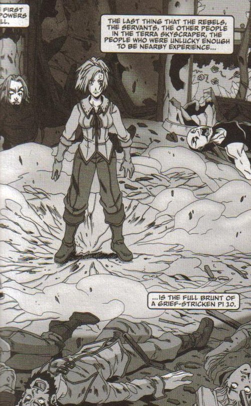 Нова вернулась и обнаружила, что Эдвард Петерс, Густаво Макбейн и другие повстанцы расправились с ее семьей и всеми работниками. Петерс приказал Макбейну пристрелить Нову, однако она использовала многократно усиленные стрессом псионные способности, которые моментально стали неконтролируемыми. Значительная часть небоскреба Терра была уничтожена вместе со всеми убийцами, а также с несколькими сотнями близлежащих людей. Нова сбежала в «Трущобы», как можно дальше от своей прежней жизни.