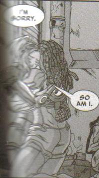 | «Это не реальность. Это смерть.» «Вероятно. Но я не стану уходить из твоих мыслей. Я и Феджин избивали тебя, верно. Но что насчет людей, погибших на Тарсонисе? Больше трехсот одновременно. Не думаю, что сам Феджин убил столько. И с тех пор ты занималась только убийствами. Стала агентом проекта "Призрак", чтобы избавиться от прошлого, но все равно все, что ты делаешь теперь — убиваешь! Ты столь же пуста и мертва, как и мы. Нова говорит с призраком Маркуса Рэйлиана» |