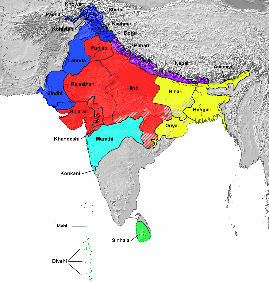 В то же время языки раджастхани, зап. и вост. хинди и бихари включаются в т. н. «Пояс хинди».