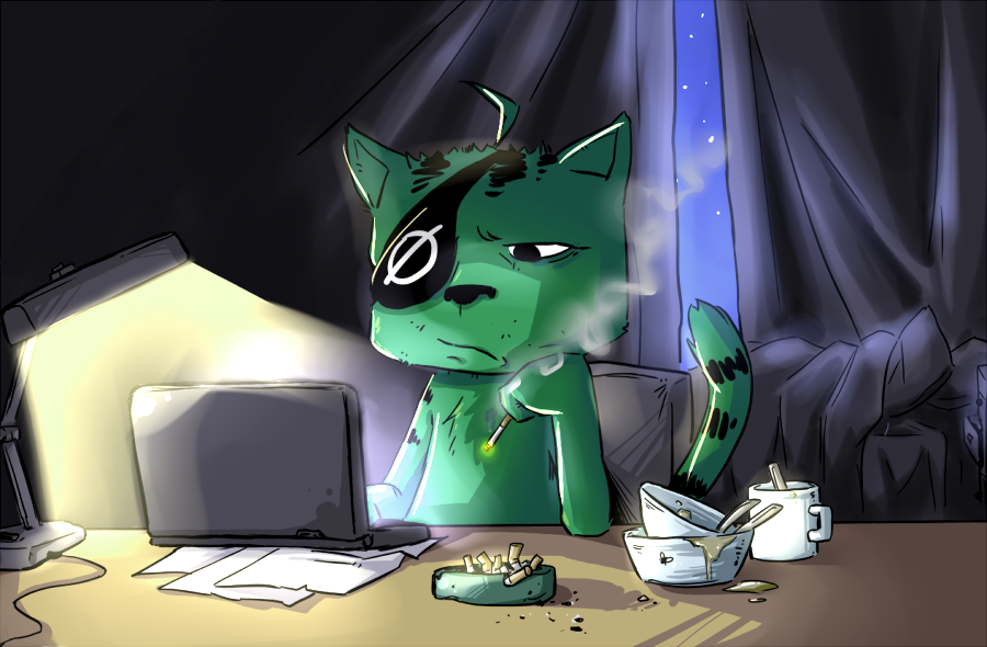 Зелёный кот с чёрной повязкой на правом глазу, с эмблемой Нульчана Ø, на макушке и лапах имеет чёрные полоски. Курильщик, компьютерщик, матершинник. Характером несколько напоминает кота Бегемота из романа Михаила Булгакова «Мастер и Маргарита», хотя, как правило, имеет кислую или недовольную физиономию.
