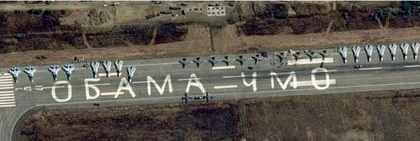 В 2015 году продаваемые в России наклейки на автомобиль патриотического содержания, такие как, к примеру, Георгиевская ленточка , начали включать в себя агрессивные антиамериканские лозунги и слоганы: «Обама — чмо», «Обама — обезьяна», «Я против того, чтобы такое дерьмо, как Америка, правило миром», «Куплю кожу Обамы дорого», и т. д.[2] Фраза «Обама — чмо» стала широко распространена в русской поп-культуре.[3] На YouTube стал популярен видео-клип российского юмориста Михаила Задорнова , который читал рэп, главной фразой которого стала именно фраза «Обама — чмо».[2] [3] Эта фраза, написанная на взлётно-посадочной полосе на российской авиабазе в Латакии , Сирия , была даже видна из космоса.[3]