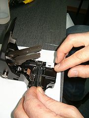Принцип работы механического скалывателя состоит в том, что на поверхность жёстко зафиксированного волокна наносится специальным ножом риска. Далее на волокно в месте риски оказывается усилие на изгиб или растяжение, при этом волокно в этом месте раскалывается, причём в идеальном случае строго перпендикулярно оси. При этом поверхность скола получается идеально ровная и идеально чистая.