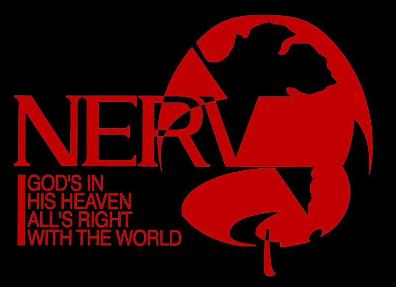 Логотип Nerv — это половинка фи́гового листа, прикрывающая его название, с девизом «God’s In His Heaven… All’s Right With The World» (Бог у Себя на небе, с миром всё в порядке), описывающим четверть круга снизу. Девиз происходит из пьесы Роберта Браунинга «Пиппа проходит мимо»[1].