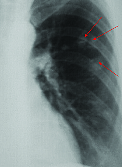 - На рентгенограмме очаговому туберкулёзу соответствует «синдром очагового затемнения». На ранних стадиях заболевания рентгенологически видны очаговые тени с нечёткими контурами, как результат воспалительной реакции в окружающей ткани. Очаги имеют среднюю или малую интенсивность. Они часто локализуются в верхних задних сегментах лёгких, и в области очагов может наблюдаться перифокальное воспаление. Это может привести к расширению корня лёгкого и его инфильтрации. На более поздних стадиях заболевания на рентгенограмме будут видны более чёткие и интенсивные очаги, иногда с наличие кальцинатов. Очаги обычно располагаются на фоне уже фиброзно изменённой ткани лёгких. Также могут быть выявлены кальцинаты в корнях лёгких[2][5][7].