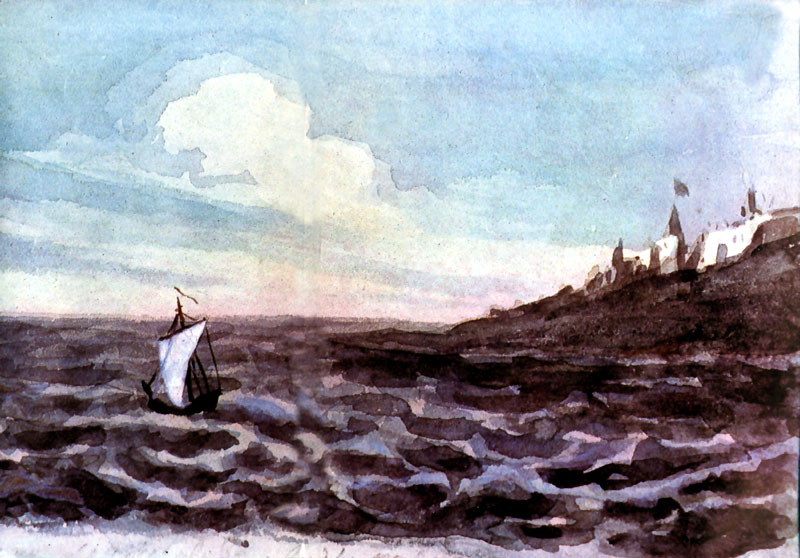 Акварельная работа (1828—1831) Лермонтова, которую исследователи называют «своеобразным графическим комментарием к литературным замыслам поэта», в частности, к «Парусу», является свидетельством того, что тема морской стихии была по — настоящему близка поэту[6].